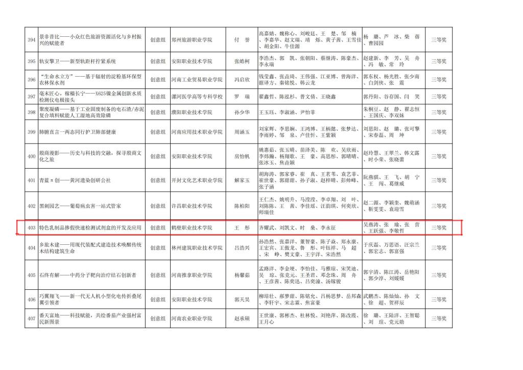 近日,河南省教育厅发布《关于对中国国际老员工创新大赛(2025)河南赛区选拔赛职教赛道比赛拟获奖名单的公示》。公司参赛团队表现优异,荣获河南赛区选拔赛二等奖1项、三等奖1项,实现了学校近两年来在此类省级赛事中的新突破。